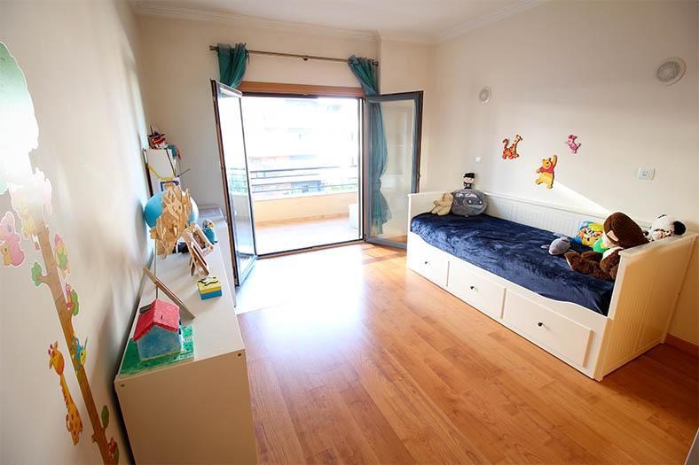 Situa-se num quinto andar, com varandas de grande dimensão, partilhadas pelos quartos numa fachada e cozinha e sala na outra, beneficiando ainda de uma exposição solar perfeita, ideal para zona lazer ou refeições exteriores.